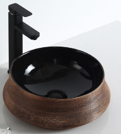 Circular Wooden and Black Stone Sink