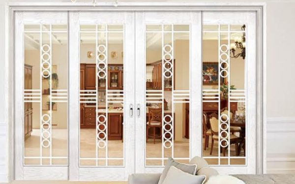A simple white and glass 4 piece slide door.